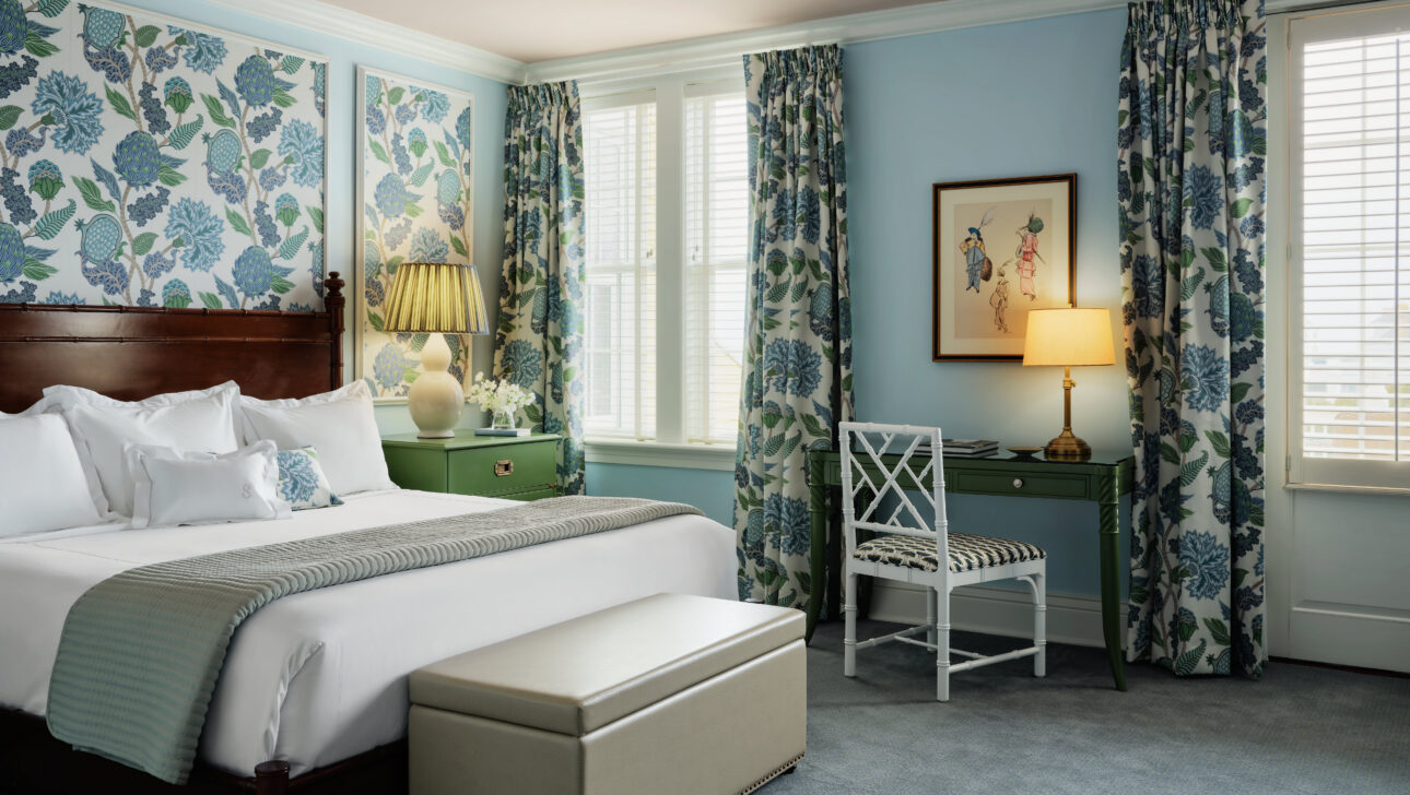 Led by the acclaimed team at Iliana Moore Interiors, in close collaboration with Ocean House owner Deborah Goodrich Royce, this project built upon a longstanding creative partnership rooted in a shared appreciation for classic American design, and each carefully developed design scheme integrates original art and prints curated by Hilary Pierce of Art Collector’s Athenaeum. Rather than reimagining the rooms entirely, the refresh refines and elevates what guests have always loved—layering in greater depth, color, and personality.