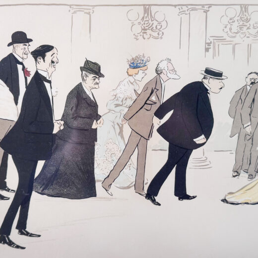In the years before the First World War life in French society reached a fever pitch at the great social centers of Monte Carlo and Paris. Artists, aristocrats, industrialists and, yes, Americans mixed at the beach resorts and grand hotels like never before. Lucky for us that Sem, the artist born George Goursat, was there to record the scene. From 1900 until 1914 he produced his best work—a series of caricatures satirizing the beau monde, from J. P. Morgan and the Baron de Rothschild, to Prince Troubetskov, and the painters Boldini and Helleu. Ocean House acquired several of his finest original folios, with inscriptions and dedications written in the hand of the artist, and those works are now part of the permanent art collections of Ocean House, along with numerous prints found in the guestrooms and public spaces of the hotel.