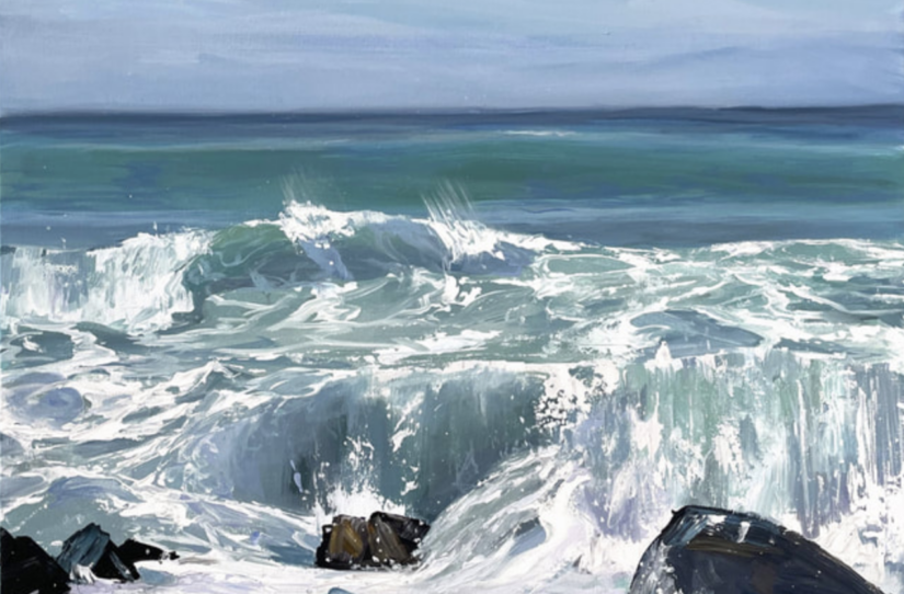 Annie Wildey is a British painter and printmaker whose subjects are the weather and its effects on various landscapes. Wildey’s paintings feature images of rolling landscapes in fog, snow-laden roads, and the tides on beaches and rocks. She has also made a series of urban landscapes depicting underpasses and bridges in New York, wanting to capture the “accidental environments comprised of structural voids between supporting columns and girders.” In printmaking, Wildey favors monotypes, and works exclusively in a monochromatic palette so as not to detract from the impact and essence of her images, as she describes. As a result, these monotypes tend towards gestural abstraction.